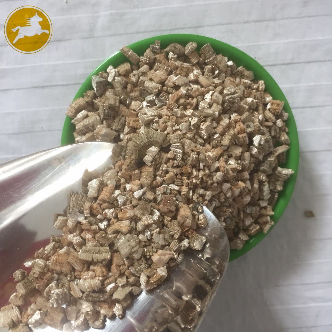 蛭石具有隔熱、耐凍、抗菌、防火、吸水、吸聲等優(yōu)異性能,在800~1000℃下焙燒0.5~1.0分鐘,體積可迅速增大8~15倍,高達30倍。顏色變?yōu)榻瘘S或銀白色,生成一種質(zhì)地疏松的膨脹蛭石,但不耐酸,其介電特性也較差。